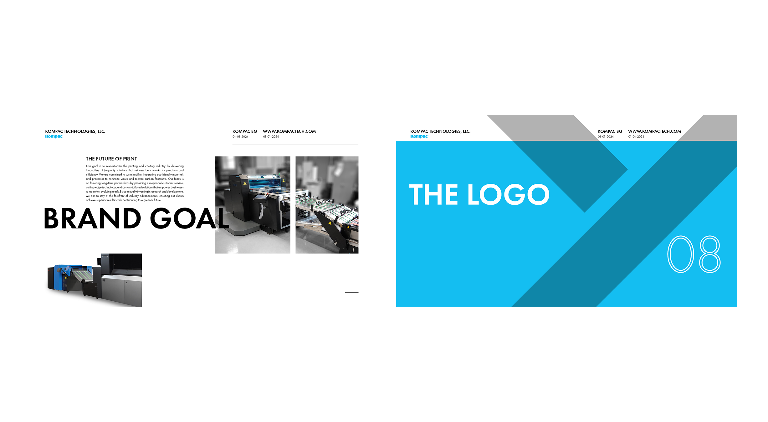 Motivated to make a meaningful impact, I took it upon myself to establish comprehensive branding guidelines for Kompac Technologies. My goal was to deliver a unified and professional brand foundation that would not only reflect the company's legacy of innovation but also position it for future growth. By implementing these guidelines, I ensured that Kompac's visual and messaging standards aligned with its reputation as a forward-thinking leader in the printing and coating industry. This initiative laid the groundwork for stronger brand recognition and measurable long-term success.